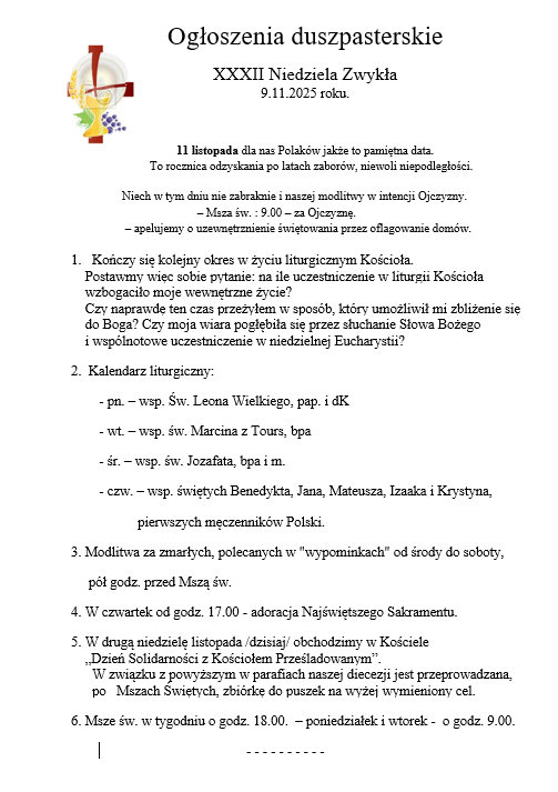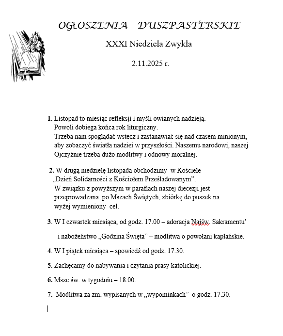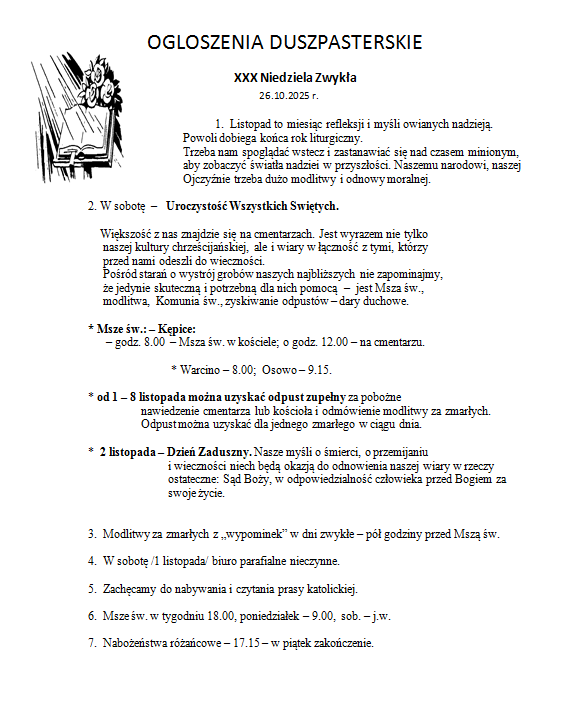 OGŁOSZENIA DUSZPASTERSKIE